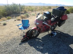 After a short ride on 93, I merged onto I-40, the highway that would take me most of the way home. Although I like the desert, interstate riding is usually relatively dull. When I started dozing off, I'd pull off the road, get my folding chair out, and nap for 15-20 minutes. Even if I wasn't able to sleep much, I would wake up feeling refreshed.