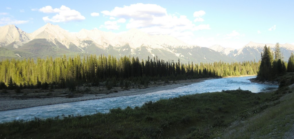 I took highway 93 north into British Columbia. The highway follows the Kootenay River in a valley floor between mountain ranges.