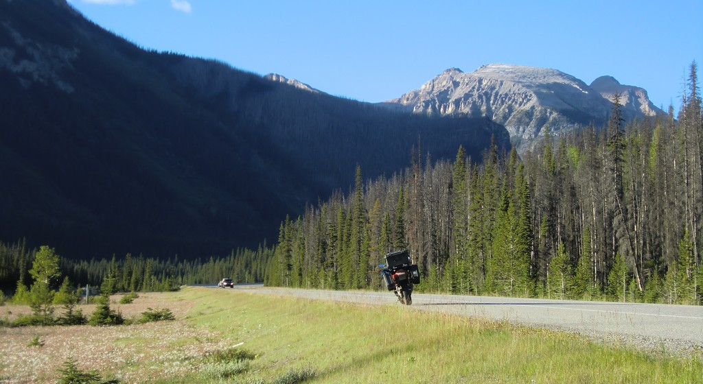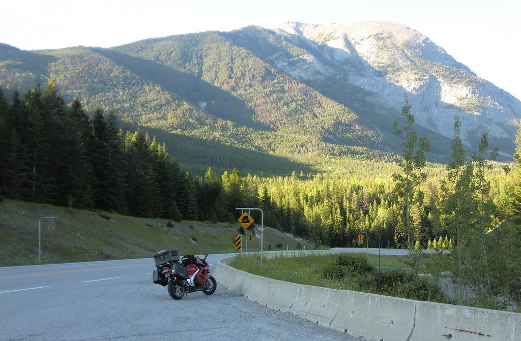 Crossing into Alberta, I entered Banff National Park. It was getting dark, so I started looking for a place to camp. The closest places were full, so I started heading northwest towards Jasper. There was a lot of construction, and I had to backtrack and switch between the Trans-Canadian highway and the Bow Valley Parkway to progress. I had been advised to use campgrounds in the area because of the wildlife. I finally found a place at the Lake Louise campground and turned in.