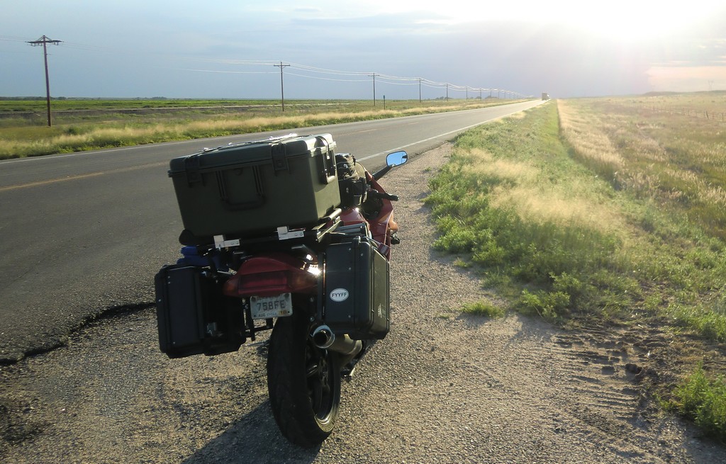 After a solid lunch, I made a couple more stops before heading west on highway 54, hoping to reach Colorado before setting up camp. The ride out west isn't particularly interesting. The road is straight and flat, with little to look at, but it was still exciting to be at the start of a big trip, and the length of the trip started to sink in as the miles slowly crept up, seemingly insignificant in comparison to the estimated total for the trip. As I rode further into western Kansas on 54, one thing very clearly stuck out: the smell of manure. I imagine it's something you'd get used to if you lived out there, but it was powerful and ever-present to me.