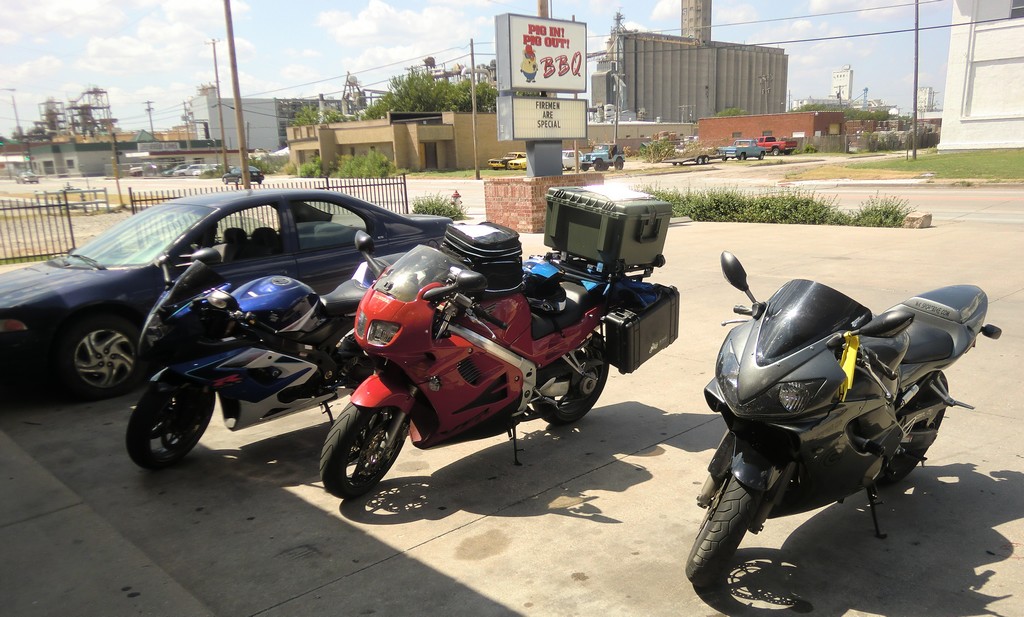 I left work early in the afternoon to have a goodbye lunch with a couple friends from a local sportbike forum. It was the first day I'd had the bike fully loaded, so I was still getting used to the weight of the bike.