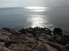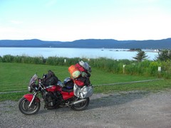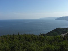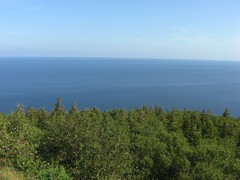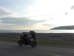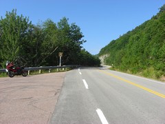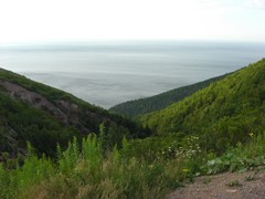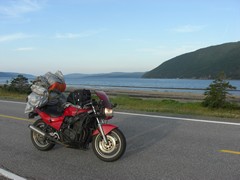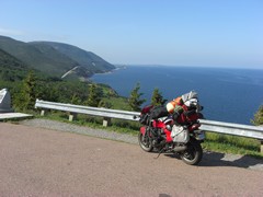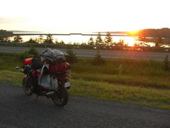 After a quick breakfast, I started out for the Cabot Trail. It was nice to be riding early in the morning. The traffic was light, and the sunrise was beautiful. I took a short ferry ride to a causeway, and started into the Cabot Trail partway into it (I didn't realize I had missed the first 30 km or so until later).