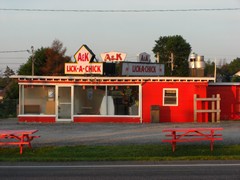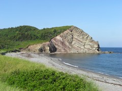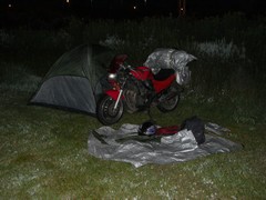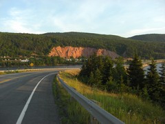 After a few hours at the laundromat, I had a late supper at McDonald's -- they're everywhere, quick, and consistent, what can I say? The guy at the laundromat had suggested camping at a nearby empty lot, and one shirtless customer across the street from the laundromat said I could put up in his yard, but I would've had to drive back through town again, and then once more in the morning to get on the Cabot Trail. So instead, I started looking for an empty spot near the highway I would jump on in the morning. I found a spot I was hoping was close enough to the highway to be off private property, and pitched my tent and went to sleep.