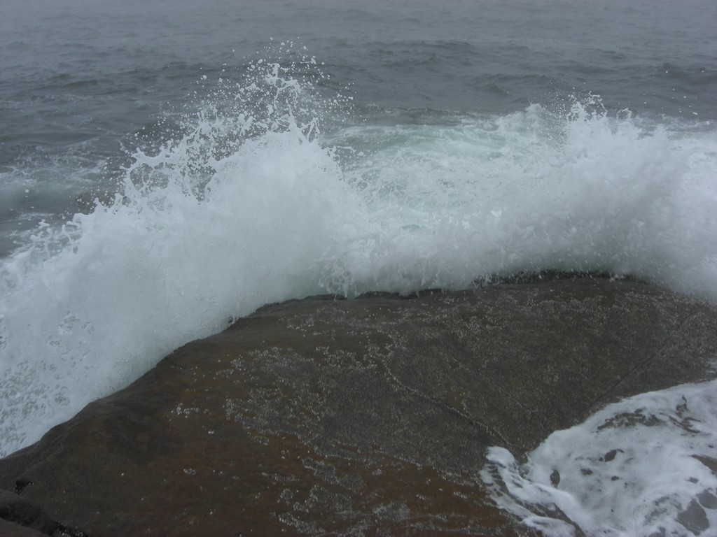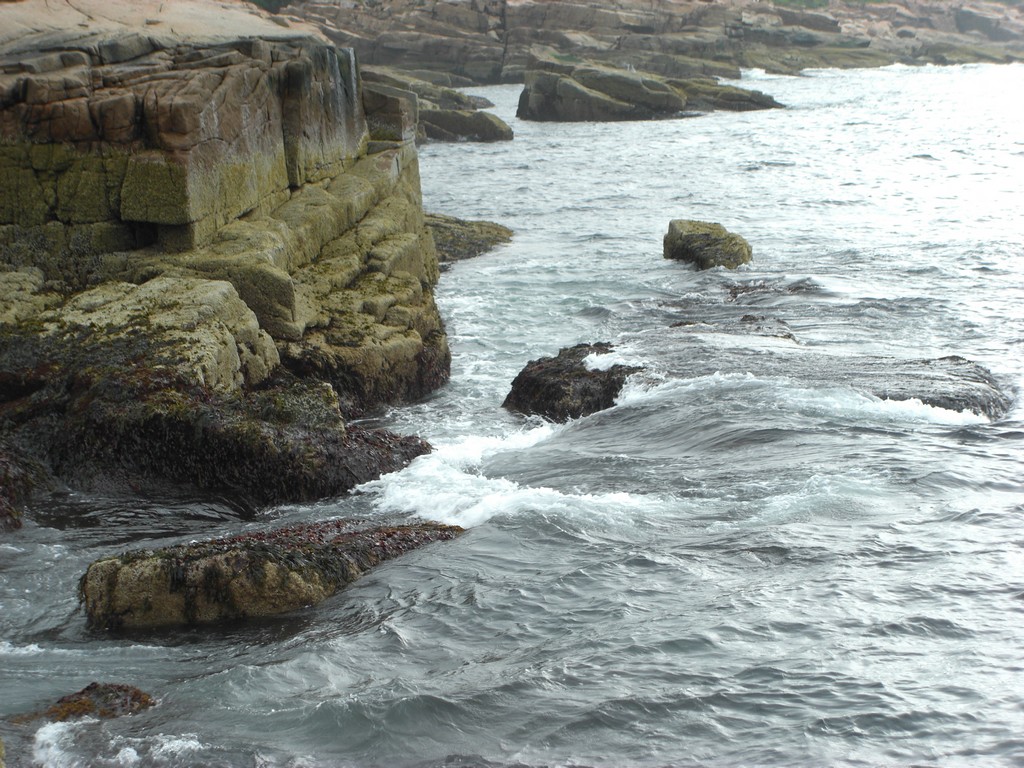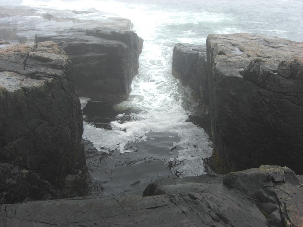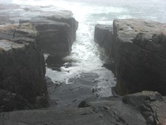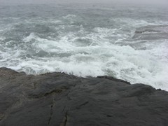 I then left the island and headed to a separate part of Acadia National Park about an hour away near Winter Harbor, ME. A guy working at the Camden Hills State Park had told me to visit Schoodic Point in particular, and I was not disappointed. It was still very foggy, but walking down to the rocky ocean front where the waves were crashing in was amazing. Some of the rocks were extremely slippery from moss growing on them, and the waves would often crash across my feet and soak my shoes, but my shoes were already soaked from the rain so I didn't care.