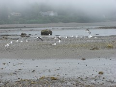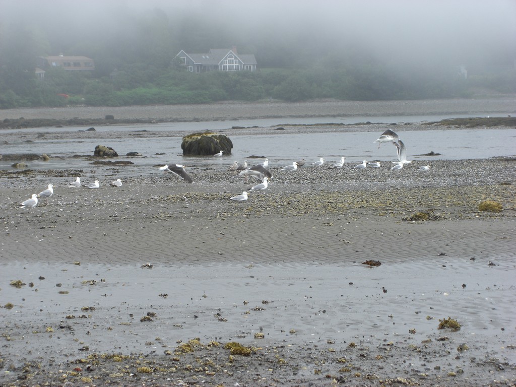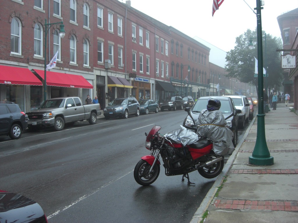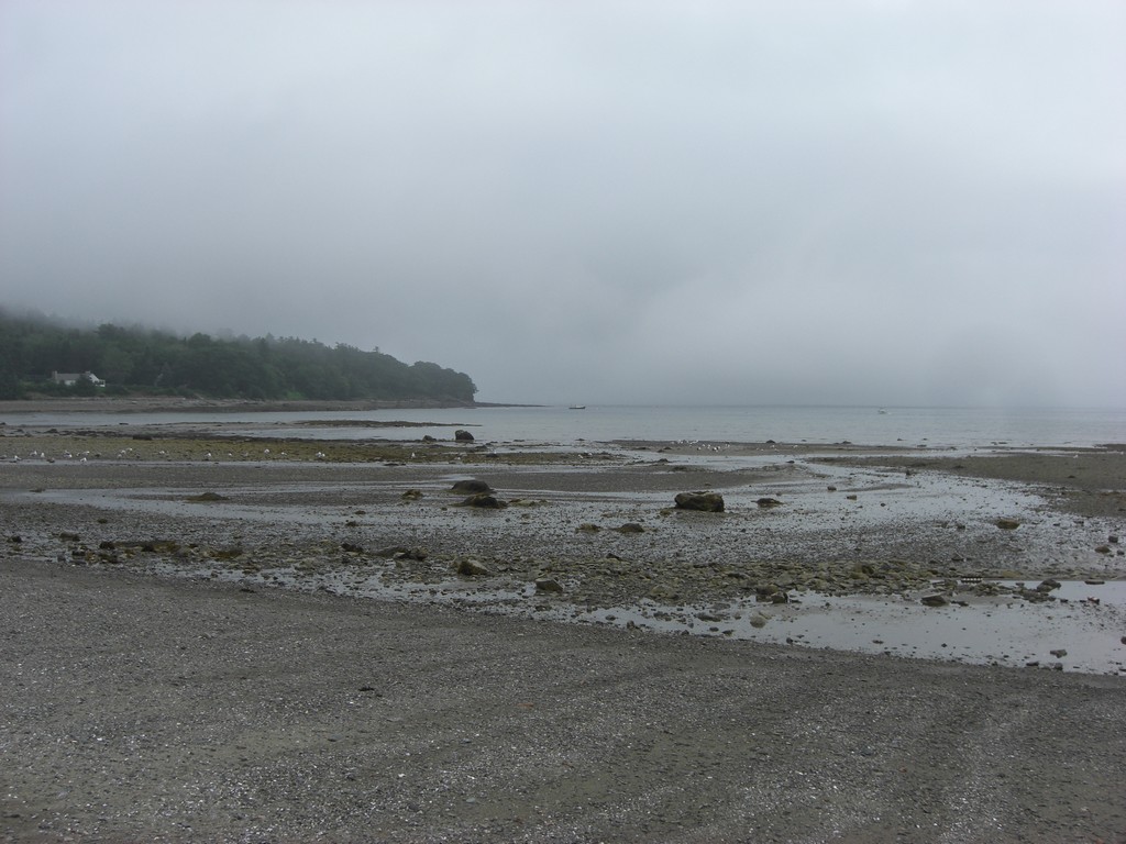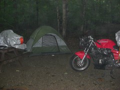 I stopped at a diner in Rockland, but it was full except for one table for six people. I waited around the door until two other couples arrived, and the five of us shared a table. There was a mother and her daughter who were from L.A., and a couple on a Gold Wing from Ohio. We had a good meal and talked about our trips, after which I headed out to find a campsite before it got too dark. The fog was extremely thick and kept building up on the inside and outside of my visor and glasses. I finally reached Camden Hills State Park and set up camp.