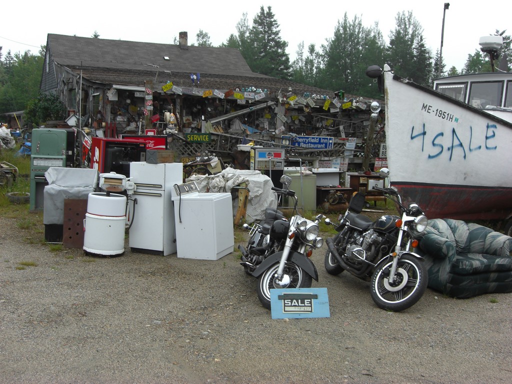 I continued along Route 1 and came across this rather cluttered front lawn, right off the highway. While I was taking the picture, the guy who lived there pulled off the highway and drove up next to me in a minivan. I asked him what was up with all the license plates and cans and other assorted junk stuck to his house, and he tole me "I'm just a nut!"