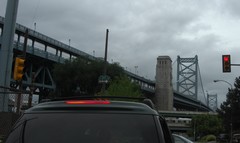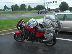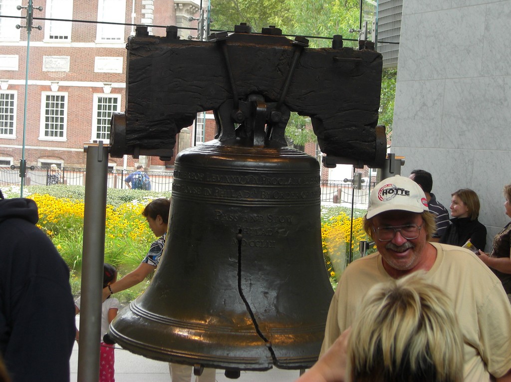 I had started heading north into Pennsylvania before I decided to just go straight to Philadelphia. Some time during the day, my speedometer cable snapped, so I no longer had a working odometer, and I had to rely on the GPS for speed. At some points, it was raining so hard cars and trucks were pulling off to the side of the road. I couldn't see through my visor no matter how much I wiped so I had to keep it flipped up and cover the lower part of my face with one hand to protect it from the stinging rain. I finally made it to Philadelphia and the rain subsided. I went and saw the Liberty Bell, which was smaller than I had expected.