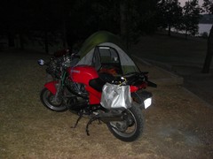 It started clouding over as the day wore on, and I began to wonder how late I'd make it to Tellico Plains. I also didn't realize that somewhere in Tennessee I rolled into Eastern Time, so it was even later than I thought it was. When I reached Monteagle, I took I-24 south to Kimball/Jasper, then took 28 north to Pikeville, then 30 east to 33/411, and finally 68 to Tellico Plains. It was 11:30pm when I finally arrived, and the small windy roads I had taken instead of sticking to the interstate were not fun to navigate in the dark, and I was glad to have the GPS to show me where I was and help me find my turn-offs. I had called ahead to Hunt's Lodge and told them I'd be there around 10:30pm, not realizing the time difference. They waited up for me anyway, and we chatted for a bit about my trip plans before showing me around the campground. I set up my tent, played with the GPS for a little while, and went to sleep.