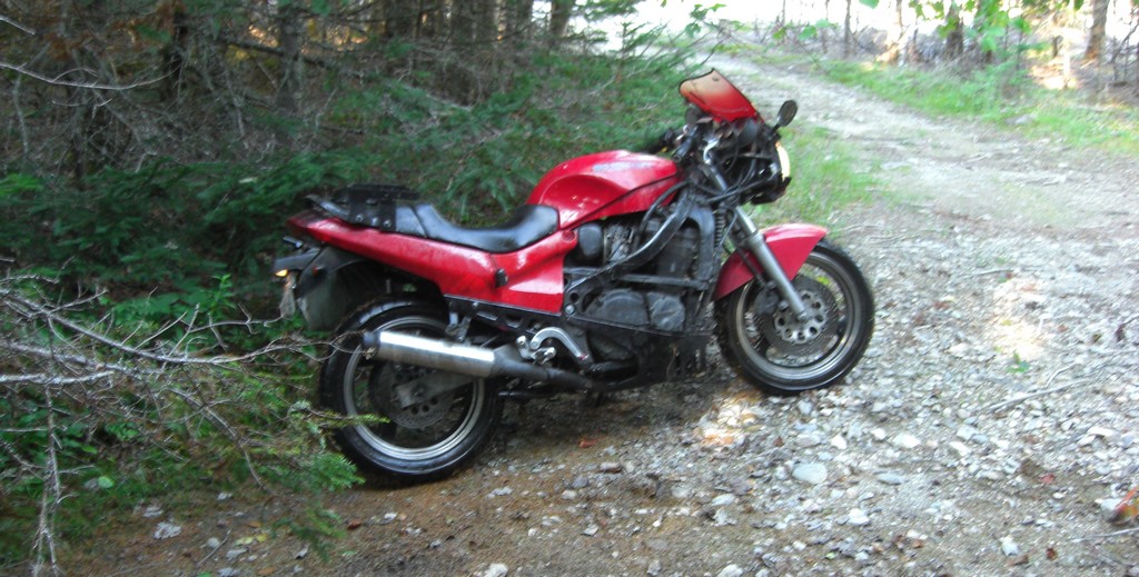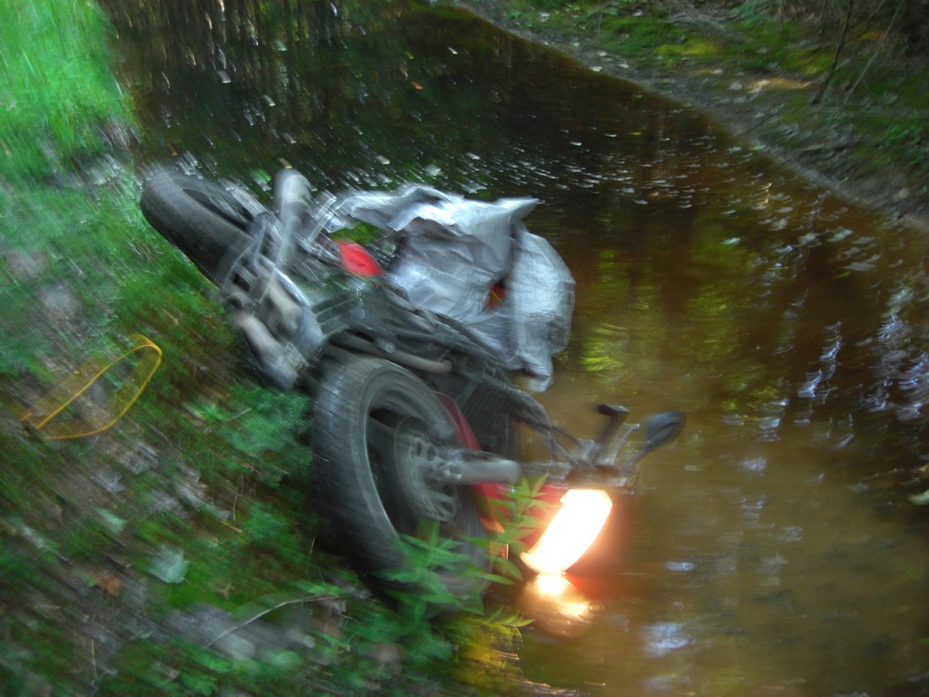 After some gruntwork, I got the bike in the water and stood up, and tried to fire her up. After some sputtering, she came to life, and I rode her out of the water. This was a huge relief to me, since I was in the middle of nowhere, and hadn't seen any other vehicles the entire time I had been riding around that trail.
