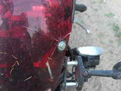 Since that little path through the trees was the only other path to the main road, I had to backtrack the way I came. The ride went a little faster the second time around. I noticed that my windshield was cracked and my cupholder was completely gone, probably underwater.
