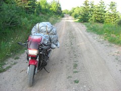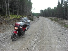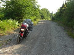 When I got close to Sydney, traffic was stopped for construction. I didn't know how long I was going to be parked there, so I figured I'd look for a way around. Zooming and scrolling around the GPS's map, I found a tiny little road (Glengarry Rd?) that looked like it would come back to the main road some distance ahead. It quickly turned into a gravel/dirt/rock road, varying depending on what part of the road I was on. After a couple wrong turns, I got on the right trail heading north.